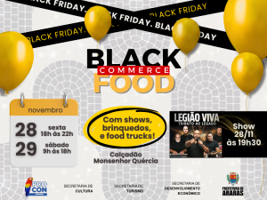 Araras terá um final de semana de compras com entretenimento e atrações gratuitas no Centro da cidade. A Prefeitura realiza nesta sexta-feira (28) e sábado (29) o evento “Black Commerce Food”, que chega para celebrar a Black Friday com descontos, música ao vivo e opções gastronômicas no Calçadão Monsenhor Quércia.